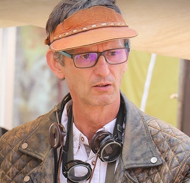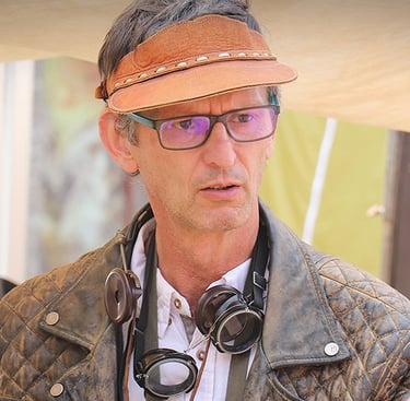 Créateur de machines de style rétro-futuriste, ses œuvres lui servent aussi de support pour la réalisation de livres photographiques qui interrogent l'évolution technologique de notre société et ses conséquences sur l'humain et sur l'environnement.